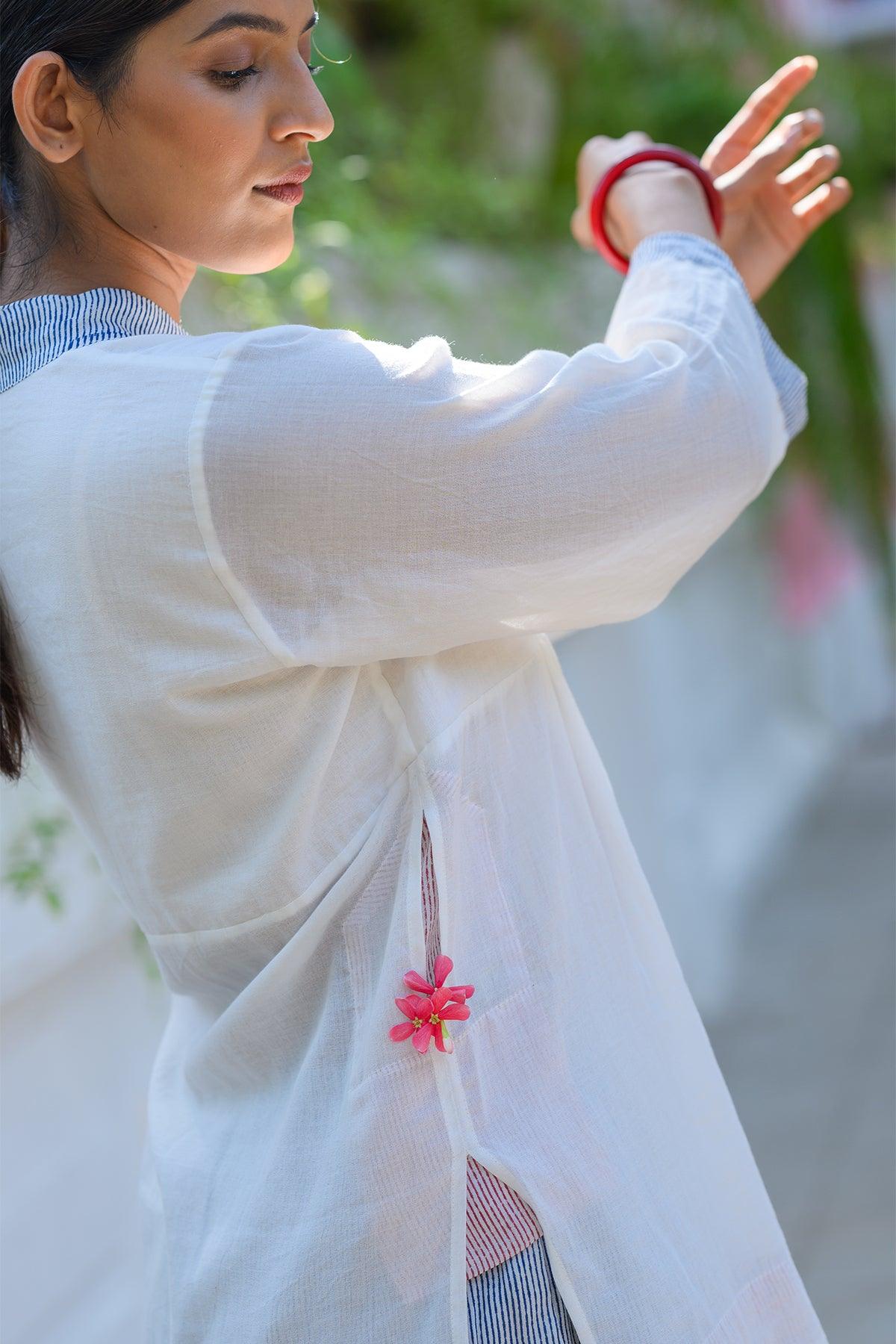 Rhea Maria Co-Ord is crafted in the softest cotton with contrast statement striped details. This relaxed fit tunic teamed with block printed trousers is comfort personified!