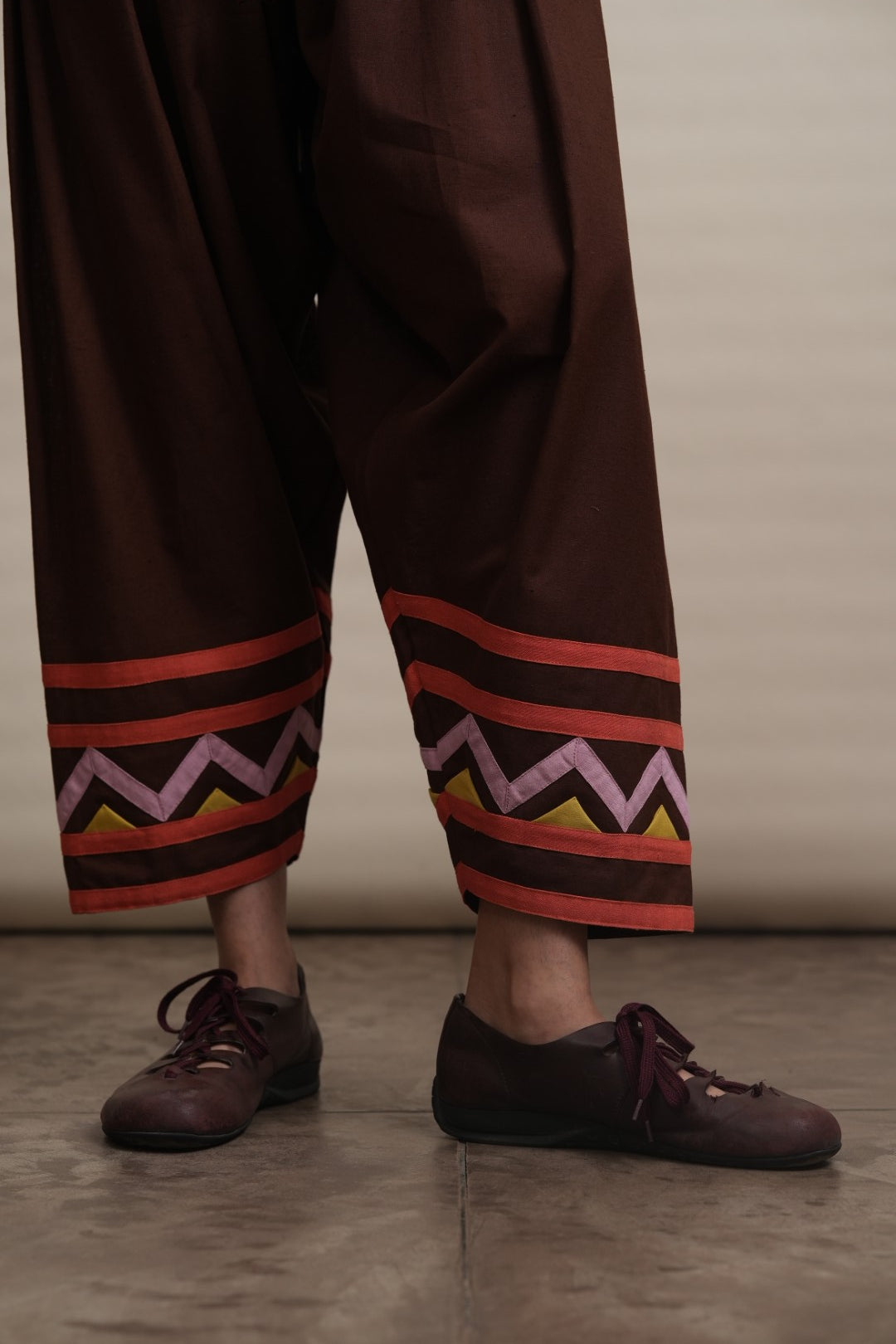 Styled with breathable linen-cotton pants, where subtle patchwork at the hem adds a crafted, modern edge.