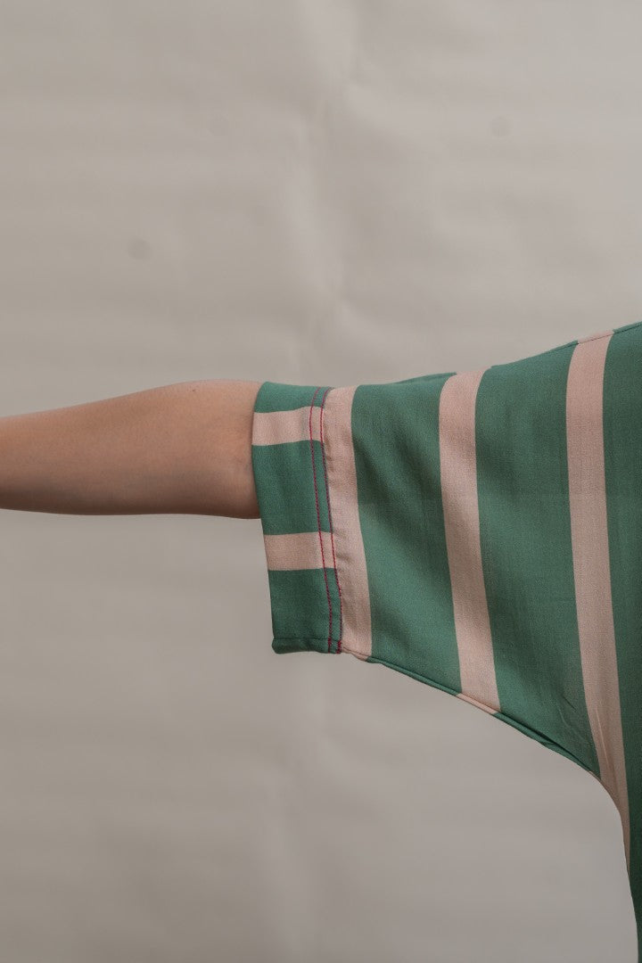 Pant : Straight-fit pants in a striped base, designed with an elasticated back waist for comfort. Finished with functional side pockets for everyday ease.